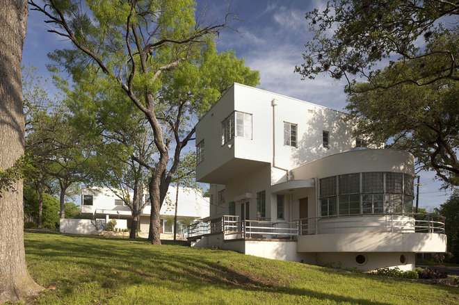 Así, mientras la “contemporánea” no se limita a una única tendencia estilística, la “moderna” evoca la arquitectura de principios y mediados del siglo XX, que abandera los principales exponentes de la era de las máquinas: ausencia de ornamentación, estructuras de acero y cemento, grandes aberturas de cristal, revestimientos blancos (normalmente estuco sobre ladrillo), espacios abiertos y cualquier otra expresión exterior mínima.